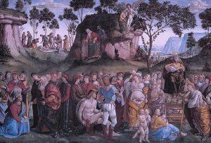 “Testamento e morte di Mosè”, 1482, affresco, Cappella Sistina, Città del Vaticano.Foto da: “Roma,” ATI, Illustrazione delle regioni italiane,Vol.10, Milano, 1942, Anno XX°, Supplemento alla Rivista mensile “Le vie d’ Italia”, Tav.106.