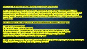 9.Vite d’artiste in Europa e in Italia: Marie Basckirteff, Alexa Wilding Adrienne Marie Louise Grandpierre-Deverzy, Camille Claudel, Mary Emily Osborn, Felicie de Faveau, Giovanna Cecioni, Anna Mutinelli, Anna Franchi, Clara Boselli, Sorelle Minghettii, Margherita Ceribelli, Susan B. Anthony, Sophia Hayden, Leo-poldina Zanetti Borzino, Claudia Gilardelli Crespi, Giulia Centurelli, Eleni Bùkura.